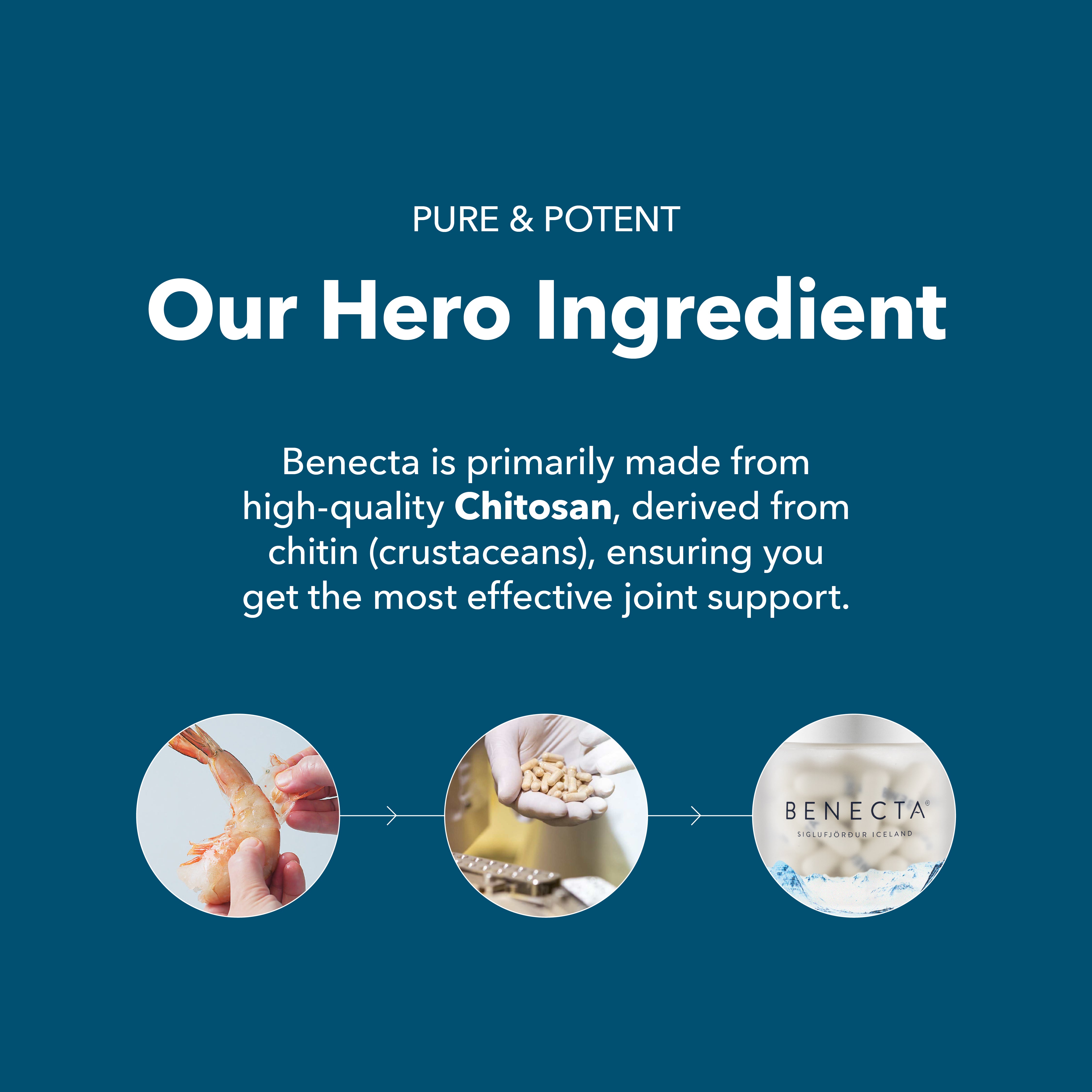 Pure & Potent: Benecta is primarily made from high-quality Chitosan, derived from chitin, ensuring you get the most effective joint support.